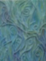 La surface de l'eau est calme et lumineuse. Des vaguelettes de papier y ondulent doucement. Des algues en chambres à air quant à elles, s'agitent dans les profondeurs plu sombres de l'océan. (Chutes de bois du menuisier "Le sens de la vis", cutes de papiers du Moulin du Got, chambres à air de vélo, vernis écologique) 23 x 23 x 7 cm 2025 100 euros